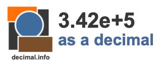 What is 3.42e+5 as a decimal? What is 3.42e+5 in numbers? What does 3.42e+5 mean? What is 3.42e+5 written out? These are some of the questions we will explain and answer on this page.