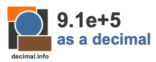 What is 9.1e+5 as a decimal? What is 9.1e+5 in numbers? What does 9.1e+5 mean? What is 9.1e+5 written out? These are some of the questions we will explain and answer on this page.