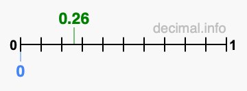 Below is our number line from 0 to 1, showing 0.26 colored in green and 0 colored in blue.