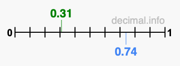 You have come to the right place if you want to know if 0.31 is greater than 0.74. We think that the easiest way to determine which is greater, 0.31 or 0.74, is to plot both values on a number line.