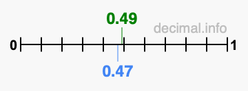 You have come to the right place if you want to know if 0.49 is greater than 0.47. We think that the easiest way to determine which is greater, 0.49 or 0.47, is to plot both values on a number line.