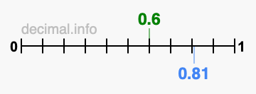 Below is our number line from 0 to 1, showing 0.6 colored in green and 0.81 colored in blue.