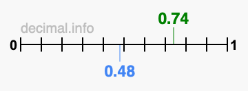 You have come to the right place if you want to know if 0.74 is greater than 0.48. We think that the easiest way to determine which is greater, 0.74 or 0.48, is to plot both values on a number line.