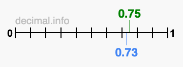 You have come to the right place if you want to know if 0.75 is greater than 0.73. We think that the easiest way to determine which is greater, 0.75 or 0.73, is to plot both values on a number line.