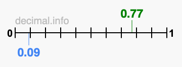 You have come to the right place if you want to know if 0.77 is greater than 0.09. We think that the easiest way to determine which is greater, 0.77 or 0.09, is to plot both values on a number line.