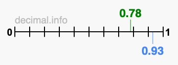 You have come to the right place if you want to know if 0.78 is greater than 0.93. We think that the easiest way to determine which is greater, 0.78 or 0.93, is to plot both values on a number line.