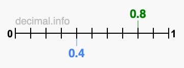 Below is our number line from 0 to 1, showing 0.8 colored in green and 0.4 colored in blue.