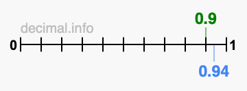You have come to the right place if you want to know if 0.9 is greater than 0.94. We think that the easiest way to determine which is greater, 0.9 or 0.94, is to plot both values on a number line.