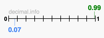 Below is our number line from 0 to 1, showing 0.99 colored in green and 0.07 colored in blue.